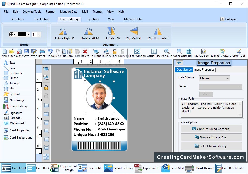 ID Cards Maker (Corporate Edition) screenshots to know the procedure: how to design and print different types of ID Cards including Employee, Student and Visitor etc. of group of people simultaneously.